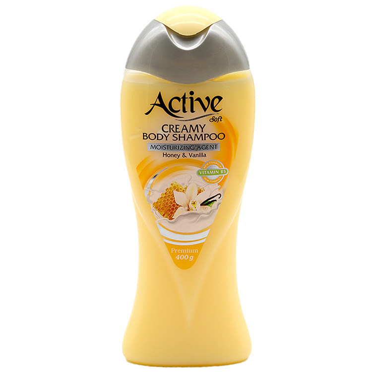 شامپوهای بدن با دارا بودن PH طبیعی پوست درعینحال که باعث تمیز شدن پوست میشوند، مانع از آسیب به لایه های بیرونی پوست و خشکی آن خواهند شد. همچنین شامپوهای بدن حاوی ترکیبات نرم کنندهای هستند که درنتیجه باعث حفظ نرمی و سلامت پوست میشود. شامپوهای بدن در داخل بطری های دربسته قرار دارد و تماسی بین مصرف کننده با داخل آن وجود ندارد، بنابراین بهداشتی و ایمن خواهد بود. شامپو بدن کرمی اکتیو حاوی ویتامینB5 و نرمکنندههای مناسب پوست بدن است که علاوه بر آبکشی آسان حین شستشو نرمی و رطوبت قابل لمس بعد از استحمام را نیز به همراه دارد. این محصول با افزايش رطوبت پوست از خشکی آن جلوگیری کرده و خاصیت کشسانی و الاستیسیته پوستهای خشک و حساس را افزایش میدهد. شامپو بدن کرمی اکتیو در چهار ورژن با رایحههای وانیل و عسل، هلو، کارامل و آلوئه ورا برای سلیقههای مختلف طراحی و به بازار عرضه میگردد.
