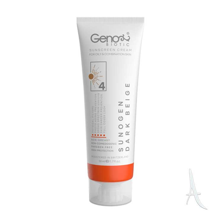 کرم ضد آفتاب رنگی ژنو بایوتیک اس پی اف 50 مخصوص پوست چرب و مختلط,، ساخت کشور ایران است. نور آفتاب اثرات مخربی هم چون آفتاب سوختگی، سرطان، ایجاد لک، پیری زود رس و ... دارد. کرم مخصوص پوست های چرب ژنوبایوتیک، با دارا بودن فیلترهای UV و همچنین مواد موثره گیاهی، نقش موثری در مهار اثرات مضر پرتوهای UVA و UVB دارد. بافت این کرم برای پوست های چرب طراحی شده، که علاوه بر ایجاد پوشش کامل بر روی پوست، فاقد چربی بوده و با دارا بودن بافت سبک، مانع از انسداد پوستی و تشکیل آکنه می شود.
