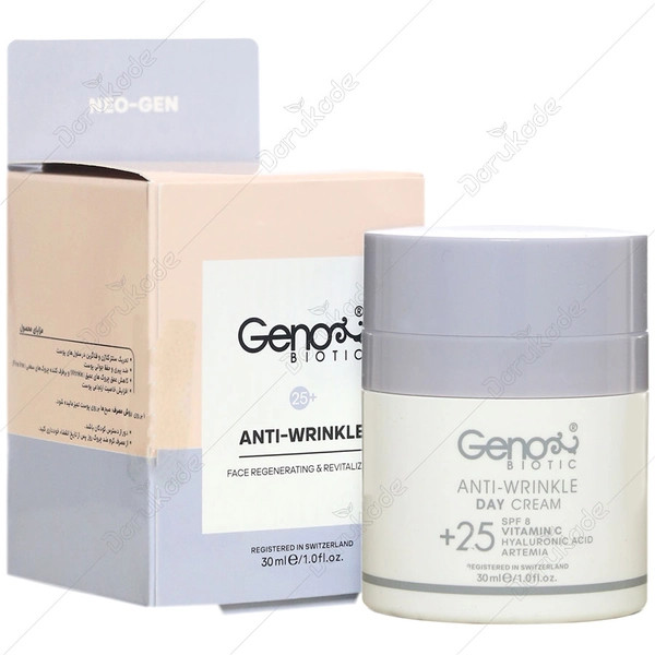 کرم ضد چروک روز ژنوبایوتیک بالای 25 سال یکی از انواع کرم روز ضد چروک ژنو است که به منظور رفع خطوط سطحی و همچنین، بهبود و کاهش خطوط عمیق پوست در بسته بندی کاسه ای به حجم 200 میل مناسب برای افراد بالای 25 سال با فرمولاسیون مورد تایید کشور سوئیس در ایران تولید می شود.